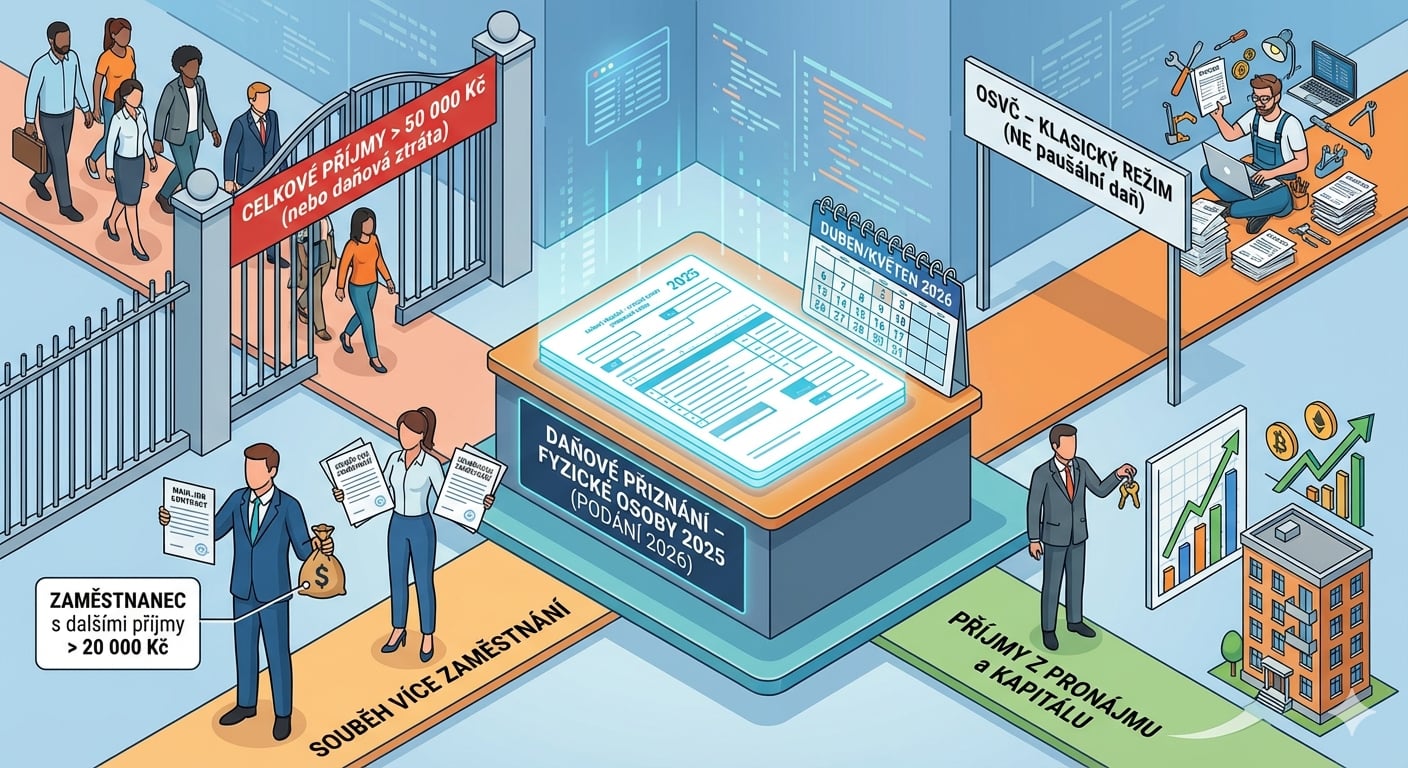 Kdo je povinný podat daňové přiznání k dani z příjmů fyzických osob v roce 2026?
